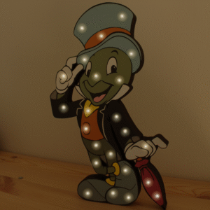Dale un toque mágico a tus espacios con esta lámpara artesanal elaborada en madera natural y acabada con detalles pintados a mano. Su diseño inspirado en Pepito Grillo la convierte en una pieza encantadora para mesitas de noche, estanterías o escritorios.