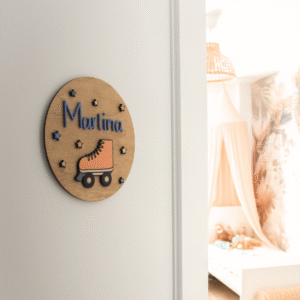 Dale un toque único a su habitación con esta placa de madera personalizada con su nombre y un divertido patín. Hecha y pintada a mano con mucho mimo.