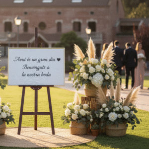 Da la bienvenida a tus invitados con un cartel de boda personalizado en madera.