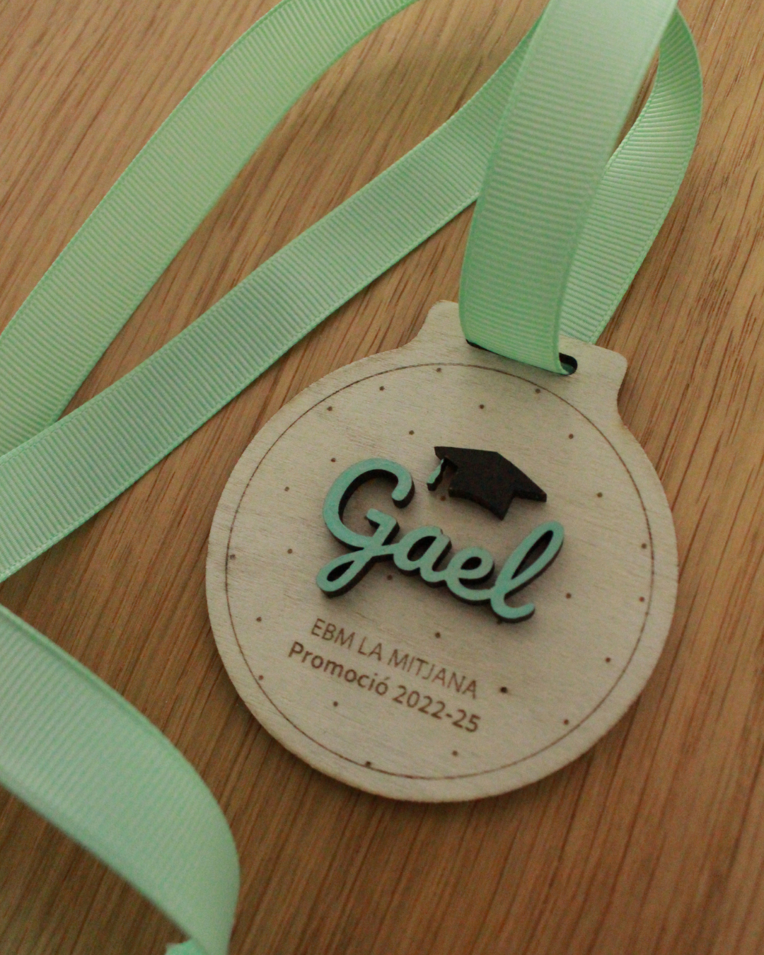 Una medalla de graduación única y hecha a mano, perfecta para conmemorar logros académicos. Personalízala con nombre, año o un mensaje especial.