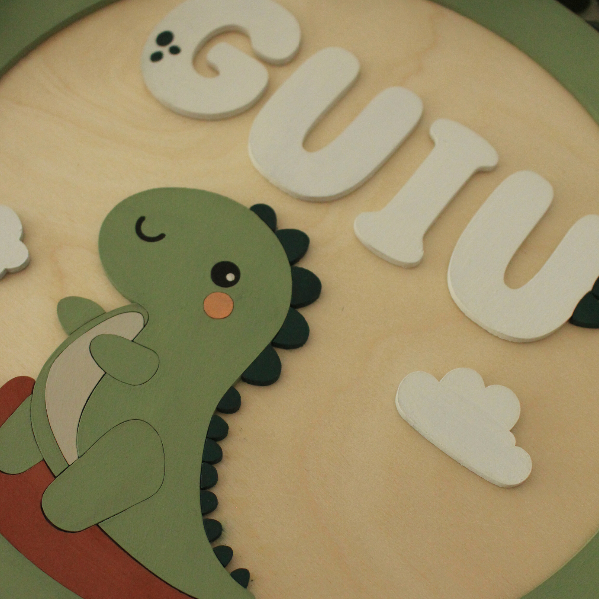 • Diseño: Figura de dinosaurio y el nombre en relieve. También se puede solicitar un diseño personalizado antes de realizar tu pedido.